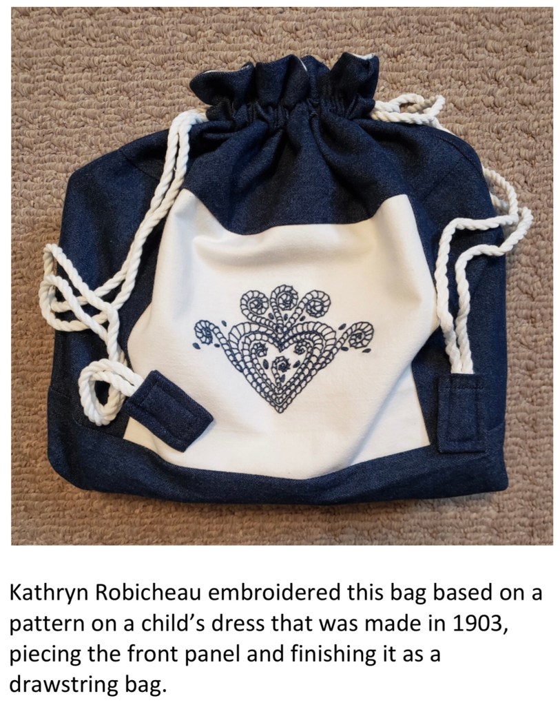 Join us at the November 2nd, Sit and Sew when Kathryn Robicheau will join us with a short slide show on the subject of embroidery. She will give pointers and answer any questions you might have and could demo specific stitches for us. If there is enough interest Kathryn has offered to lead an embroidery workshop via Zoom.