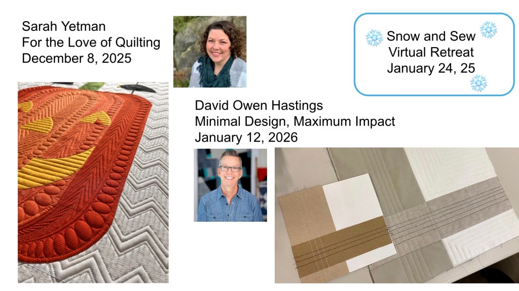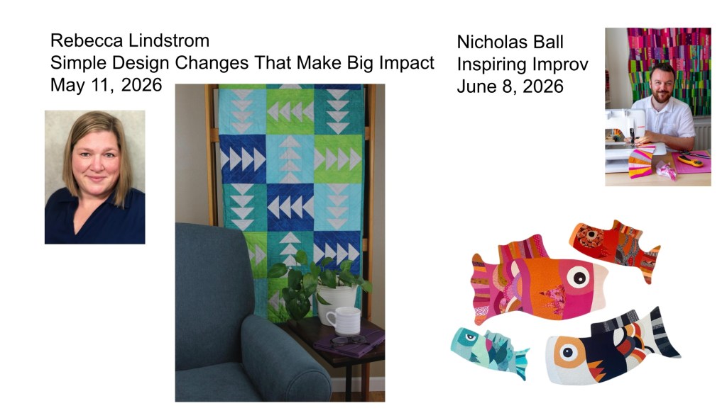 In January, David will describe his process for developing simple graphic quilt designs, starting with stitched paper models, called maquettes. (Spoiler alert! Minimal ≠ Boring) He’ll show examples of how to translate an architectural photo into a quilt design; techniques that are also great for making unique modern quilt block designs. And before he’s done, David will talk about walking-foot quilting these quilts. Join us when David Owen Hastings helps us bridge the gap between modern art and modern quilting!