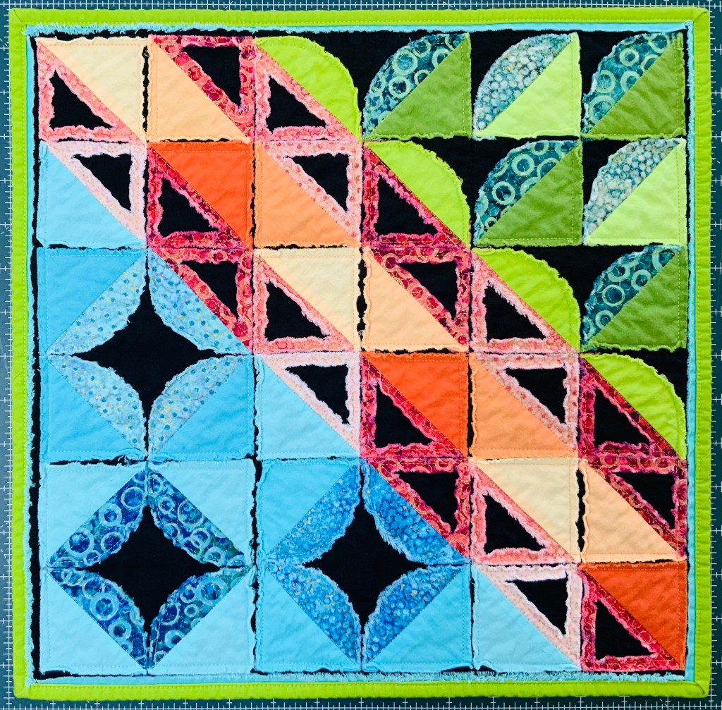 The class will begin with an exercise in creating transparency effects; then, we will work from paper templates to accurately cut and piece large-diameter curves. Learn to cut and precisely piece large-diameter curves from templates, assemble a quilt top with pieced borders, and plan a colour palette that includes a transparency effect.