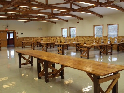 We are having a retreat at Camp Trillium, Rainbow Lake from Friday, November 1, 2019 until Sunday, November 3. Camp Trillium is a lovely facility and it seems to be tailor-made for quilting retreats. The big photo below is our sewing room and all 50 quilters will have their own table with drop down from the ceiling power cords! There will always be coffee and tea available in the dining room and there are multiple seating areas for some hand sewing with your new friends.