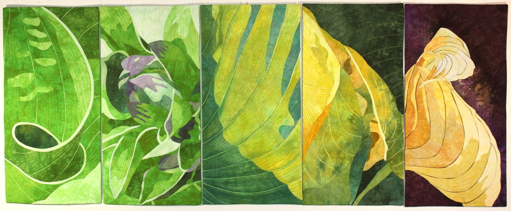 If you’re newer to quilting you may not be familiar with Elaine Quehl or her work. So take a look at the photo below. You are looking at quintessential Elaine Quehl artistry: dramatic and colourful nature-themed art quilts featuring luscious foliage (or flowers or trees), and made from fabric she hand-dyed herself.